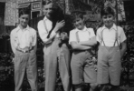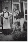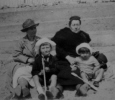 | Percy (William) Gardner (left) with brother John and Mother Ethel, and Grandmother Sarah Bartrip. | Percy, holding dog, with his brother John to his right and cousins to his left. | Wedding 12 April 1941 at Stoke Newington Register Office to Dorothy May Fitzjohn (Peggy) |