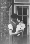 | Percy with baby Brian at 172 Galliard Road - 1942 | Percy with Peggy and Brian at 48 Oaklands Ave - c 1955 | Percy with Peggy 1950's |