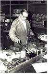 | Percy working for the capitalists (Chubbs) - a rare photo | A Setright Registers bus ticket machine of the type assembled by Percy during the 1950's (Photo by permission of the Potteries Museum. Hanley.) |