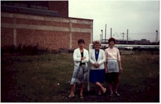 Pat Gardner (left) with colleagues photographed outside Spears factory. The building