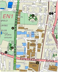 and where the tennants association had a hall used by the Arts Union. View Ponders End map. |